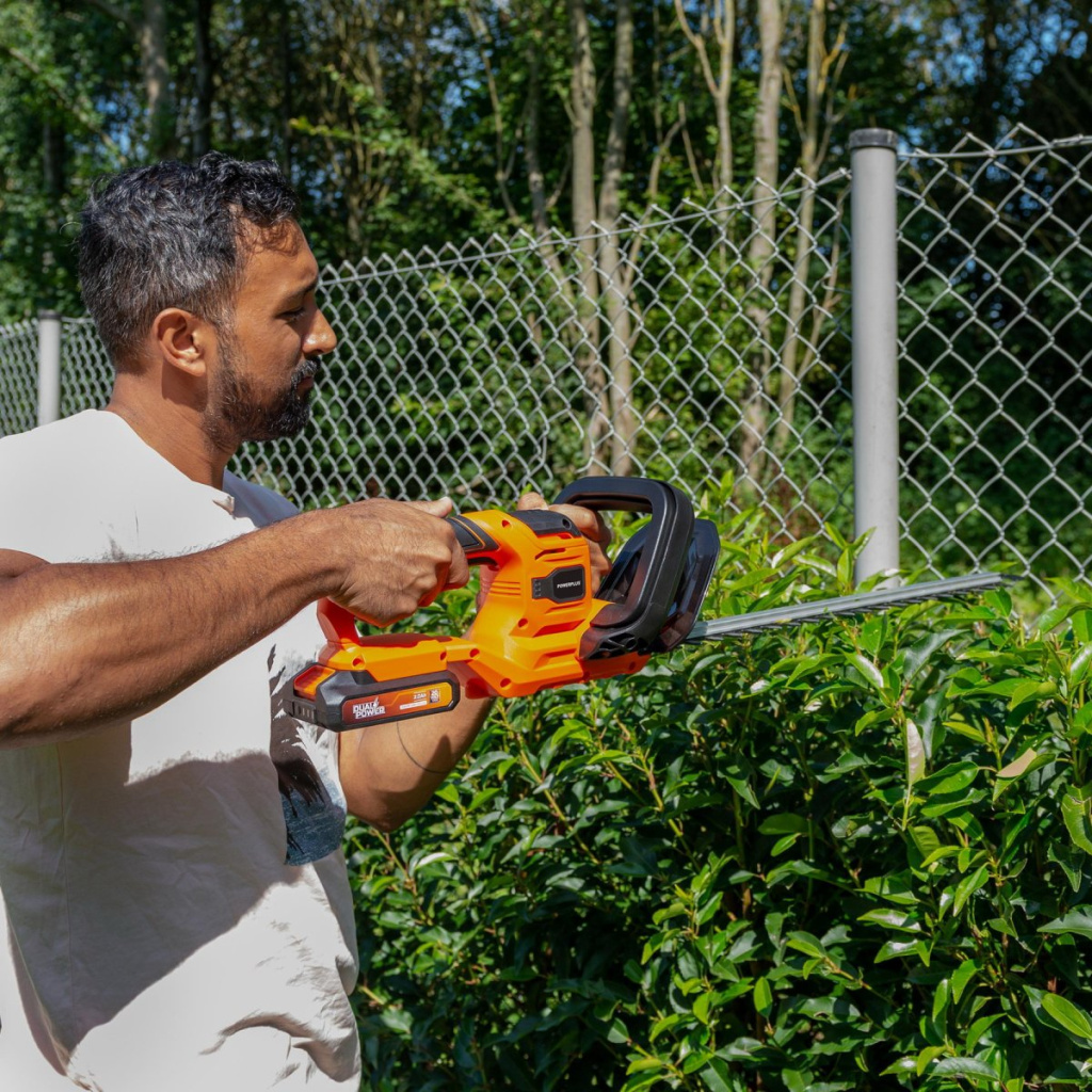 Tyto akumulátorové nůžky na živý plot POWDPG75301 od PowerPlus jsou vybaveny 20 V motorem, který vám umožní rychle stříhat živé ploty a keře se skvělými výsledky. Tyto nůžky na živý plot s hmotností pouhých 1,9kg jsou skutečně lehké, takže se s nimi snadno manévruje a ovládá. Nabízí optimální uživatelský komfort i při delší práci. Tyto nůžky na živý plot jsou vybaveny protiběžným ostřím o délce 515 mm, díky čemuž jsou ideální pro menší živé ploty a keře nerovnoměrně tvarované. Kromě toho je snadno ovladatelný a lze jej použít v oblastech, které jsou obvykle těžko dostupné. Kapacita střihu: S touto čepelí o délce 515 mm a délkou střihu 460 mm můžete bez námahy přeřezat větve o tloušťce až 15 mm. Tato řezná kapacita je částečně určena vzdáleností mezi noži. Na silnější větve je nejlepší použít pilu nebo sekací nůžky. Pritiběžná čepel se skládá ze dvou samostatných čepelí pohybujících se v opačných směrech. Navíc jsou to čepele řezané laserem a poskytují lepší výsledky řezání. Pokud máte se svou zahradou velké plány a chcete se vyhnout přílišné ruční práci, určitě se podívejte na zbytek produktové řady Powerplus. Kromě nůžek na živý plot nabízíme také elektrické nůžky, teleskopické řetězové pily, sekačky na trávu a mnoho dalšího. Stroj je dodáván bez baterie a nabíječky. Použít můžete baterie ze série DUAL POWER o napětí 20V a také i baterie o napětí 40V. Použití 40V baterie zajišťuje ještě delší dobu chodu stroje ve srovnání s 20V verzí.
