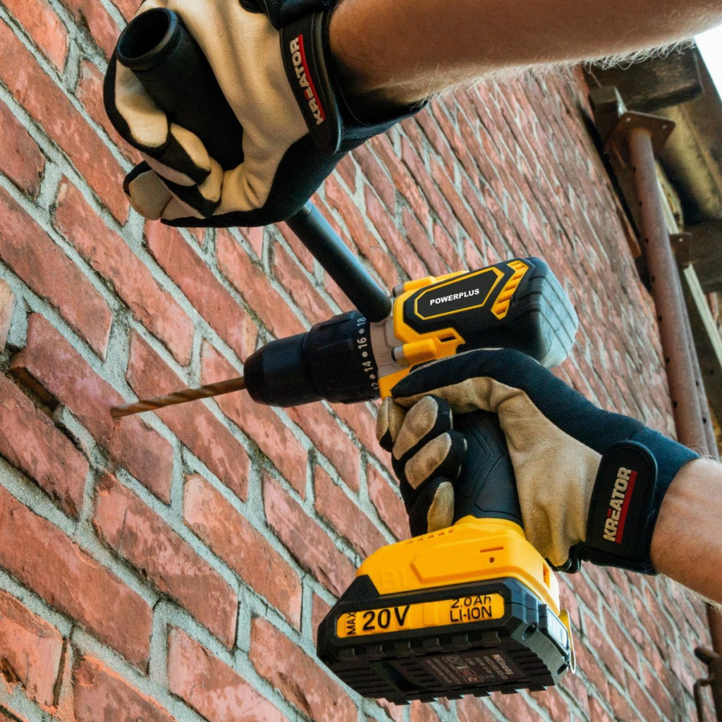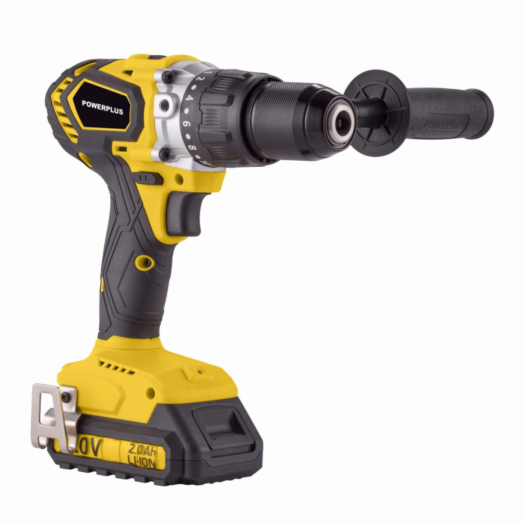 Tato akumulátorová 20V bezuhlíková příklepová vrtačka/šroubovák POWX00530 od PowerPlus je ideální pro všechny náročné projekty v domě a kolem něj, které vyžadují šroubování nebo (příklepové) vrtání. S maximálním točivým momentem až 120 Nm je důležité při (příklepovém) vrtání vždy používat přídavnou rukojeť. Tím se zabrání vážným zraněním. Co můžete s touto příklepovou vrtačkou/šroubovákem dělat? Tato příklepová vrtačka/šroubovák je výkonný všestranný pomocník, který lze použít jak pro vrtání, tak pro šroubování. S jeho pomocí můžete bez námahy vrtat až 65 mm do dřeva, 13 mm do oceli a 16 mm do betonu. Vyberte si ze 2 různých nastavení rychlosti a 20 nastavení točivého momentu, abyste plně přizpůsobili nástroj vašemu projektu. Nejvyšší nastavení otáček (0 min-1 – 2000 min-1) je pro vrtání a nižší otáčky (0 min-1 – 600 min-1) pro šroubování. S maximálním točivým momentem 120 Nm tato příklepová vrtačka a šroubovák výrazně převyšuje své konkurenty z hlediska výkonu. Tento nástroj zvládne tvrdší materiály, dokáže pracovat s delšími šrouby a vrtat větší otvory. Praktický přepínač otáček vlevo/vpravo použijte k upevnění nebo povolení šroubů. Stroj je vybaven systémem pozvolného rozběhu, který způsobuje postupné zrychlení motoru. To je bezpečnější a poskytuje větší kontrolu. Pokud se něco pokazí, rychlé zastavení okamžitě vypne nářadí, aby byl zajištěn bezpečný provoz za všech okolností. Ochrana proti přetížení zabraňuje přehřátí a přetížení elektromotoru. Automaticky vypne motor, když dojde k prudkému zvýšení teploty. Přídavná rukojeť poskytuje ještě pevnější úchop a můžete ji připevnit vlevo nebo vpravo, takže nástroj můžete vždy uchopit v nejpohodlnější poloze. Stroj je dodáván v kufru včetně 2ks baterií 2.000 mAh a nabíječky.