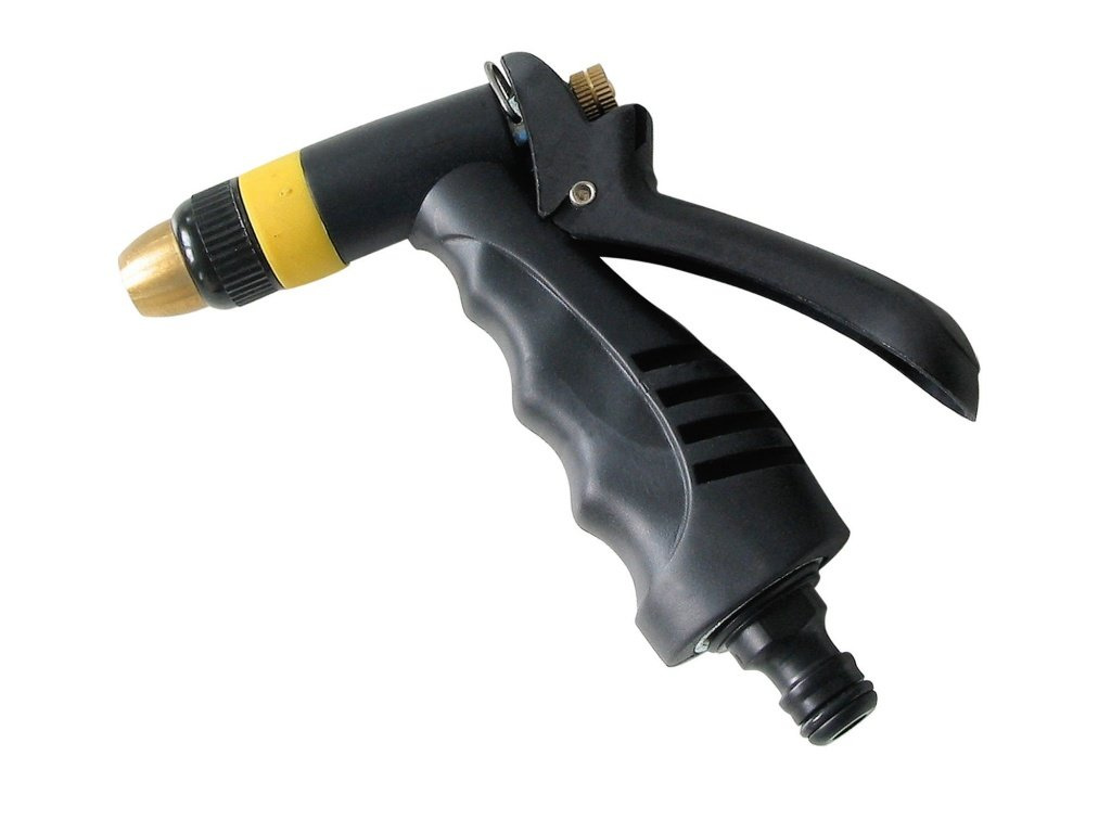 doplňující parametr: mosaz. tryska s možností nastavení stříkání od jemného mlžení až po plný proud, ergonomická rukojeť s aretací